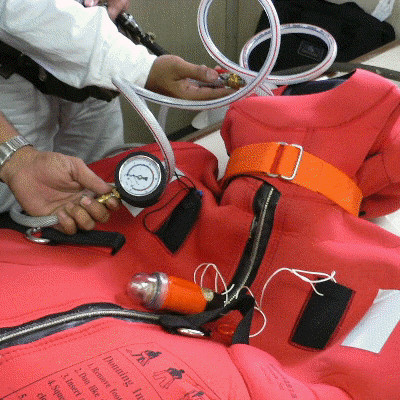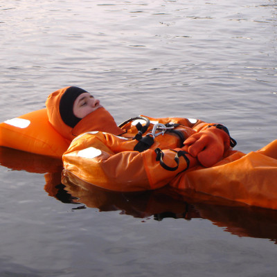 An Immersion suit is a special designed waterproof suit that prevents hypothermia in case a person found himself overboard in open ocean usually when abandoning a ship.