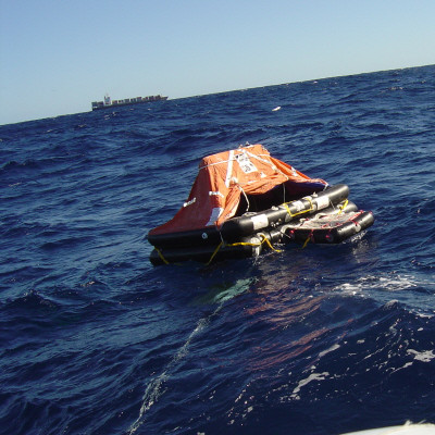 Life raft is usually a small boat like platform made by inflatable material and to be used in an emergency for saving lives, such as abandon ship.